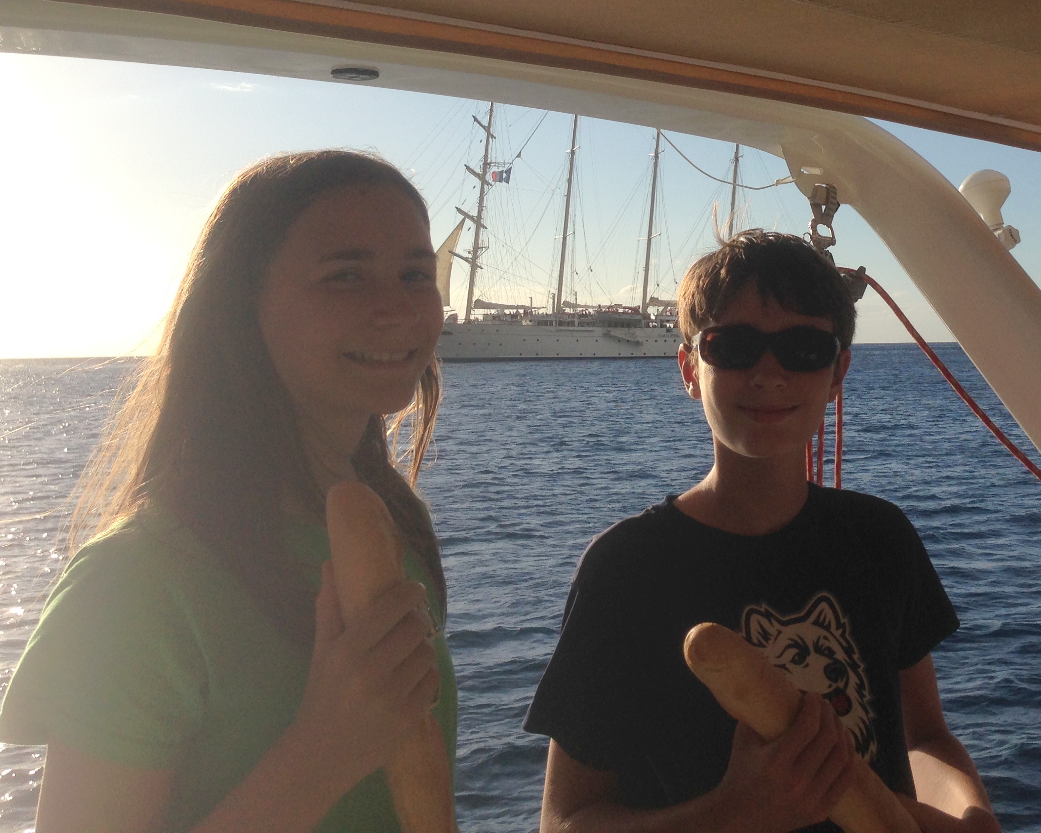 Right now, my family and I are in Deshaies Harbor, Guadeloupe. The trip here took about half a day, but it felt like forever! The waves were pretty rough and I wasn’t able to take a sea-sickness pill as soon as I should have. I spent the entire trip in the cockpit, trying not to throw up. And it didn’t even work! I still got sick, twice! Blegh.