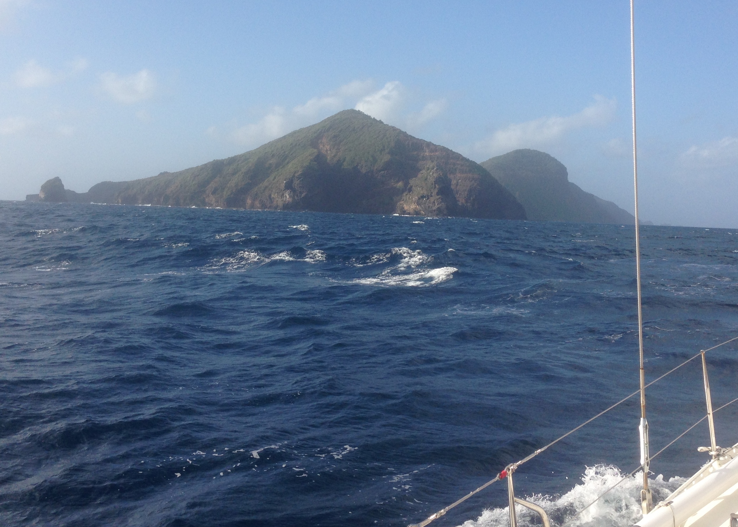 February 2nd we hoisted anchor and set sail for the Grenadines.  For this 100nm passage we decided to sail through the night in order to arrive at Bequia during daylight hours.  We also chose to stray from the beaten path by sailing down the windward coasts of  St Lucia and St Vincent, thereby avoiding the wind shadows that compel most boats to motor along the these islands’ western shores.  So, from the southern tip of Martinique we steered a heading of 160, near close hauled, for the first few hours.  We bore off onto a beam reach when we were sufficiently east to remain at least 5 miles off the shores of St Lucia and St Vincent.  This kept us in a couple thousand feet of water, too deep for local fish traps that might ensnare our rudders.  It also gave us some cushion for the unexpected.  Sailing down a lee shore can provide some beautiful sightseeing, but when things go wrong you risk being swept onto the rocks. That’s doubly true at night.