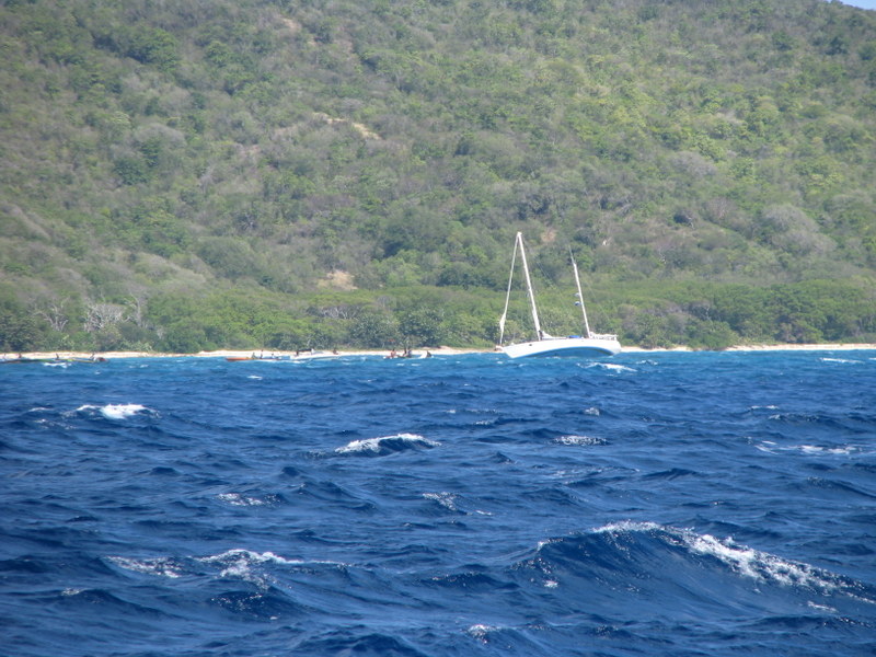 Passing the southeast coast of Mayreau we saw a 45 foot ketch hard aground, the surf pounding it against the shore. It appeared a most capable, blue water boat, not a fancy yacht but a real, live-aboard cruiser. We don’t know what happened, but they may have come to grief during the night, when the tradewinds built from the southeast and the waves swept across the reef, turning what seemed like a pleasant anchorage into an untenable spot.