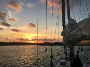 There have been quite a few highlights these last few months aboard Strider. I’ve seen many interesting tropical creatures while down here, for example turtles, lizards, birds, insects, and of course, beautiful fish. It was fun to see how different the animals are compared to the animals we have back home. In addition to the wildlife, there are also amazing sights. I saw sunsets, waterfalls, and rock formations that were surprisingly different from those in New England. In Flamingo Cay, we saw a cave filled with shallow water that was fun to explore. On French Wells we walked across a beach that had hardened into sandstone, but was slowly breaking apart and eroding due to regular wave action and hurricanes. In the Bahamas we spent quite a while at unpopulated islands. Nighttime at these islands was amazing, because the stars were always extremely bright, since the lights of civilization were too far away to disrupt them. I also had new experiences while living on a boat. I made bread from scratch, went on long, beautiful hikes through rain forests and up the slopes of volcanos, and helped sail Strider. On night passages I would schedule shifts and make sure I was on time for each of my own. Along the way North, we met a few other boats with kids, and I made some great friends. Unfortunately, after spending too little time together, we parted ways with the promise of staying in touch. When I am back home, I’m sure I’ll remember everything I saw and did. I may not get to ever see/do some of them again.